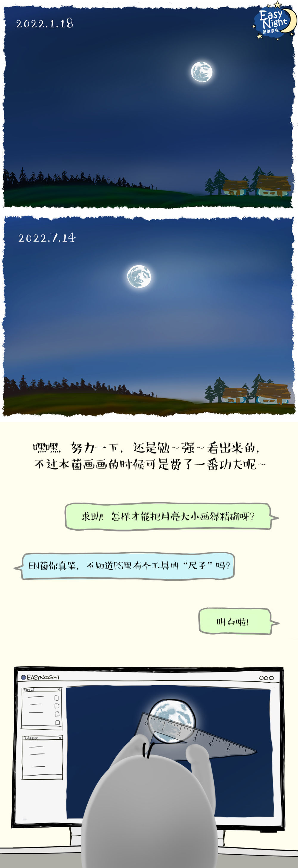 2022年的“超级小月亮”和“超级月亮”想象图。作者:天文科普漫画博主EasyNight(EN菌)