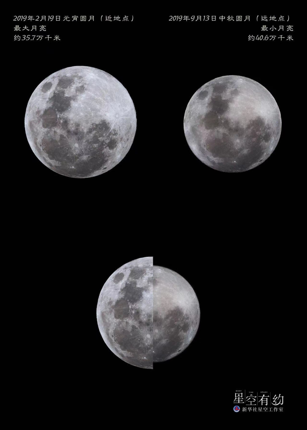 广东省天文摄影爱好者袁凤芳拍制的2019年“最大满月”和“最小满月”。(本人供图)