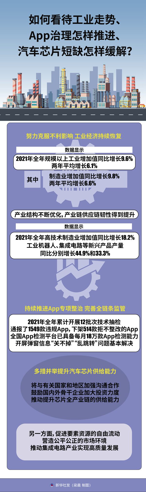 2021年我国工业经济运行状况如何,2022年走势怎么看?App治理怎样推进?汽车芯片短缺怎样缓解?在20日召开的国新办发布会上,工信部有关负责人对工业通信业热点话题进行回应。