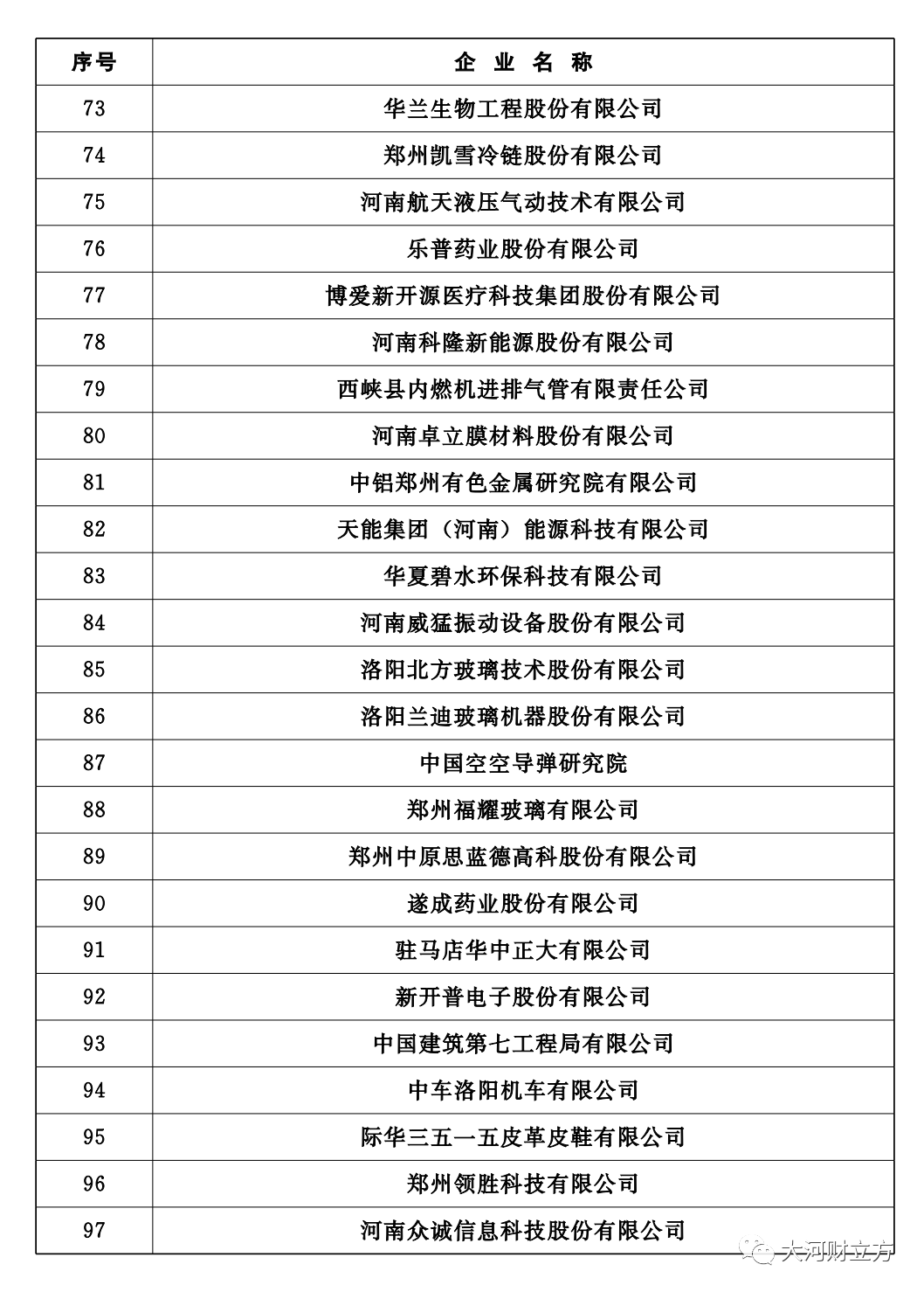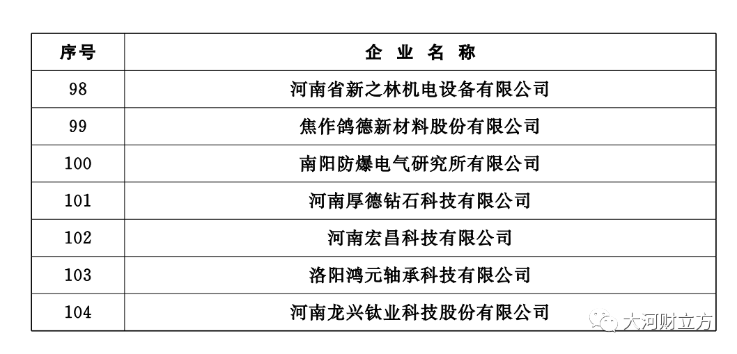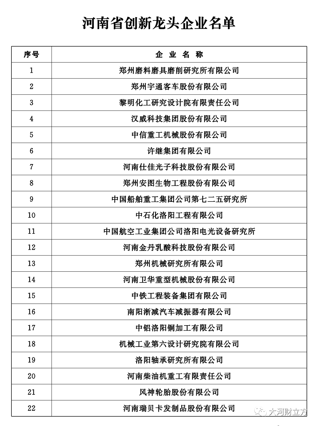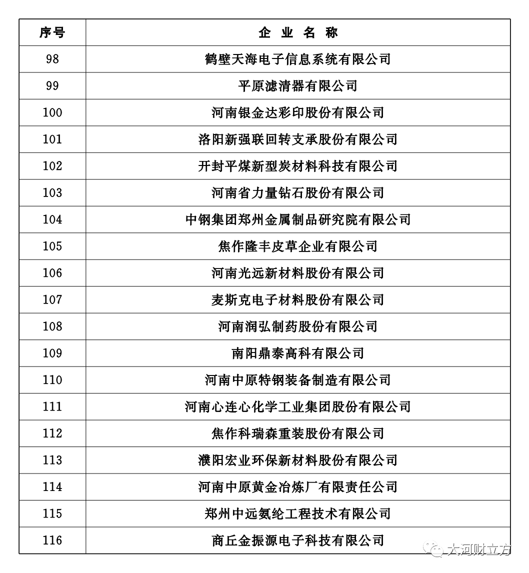 其中,创新龙头企业名单包括宇通客车、汉威科技、中信重工、许继集团等116家企业,“瞪羚”企业名单包括河南三元光电科技有限公司、鹤壁国立光电科技股份有限公司、河南凯旺电子科技股份有限公司等104家企业。