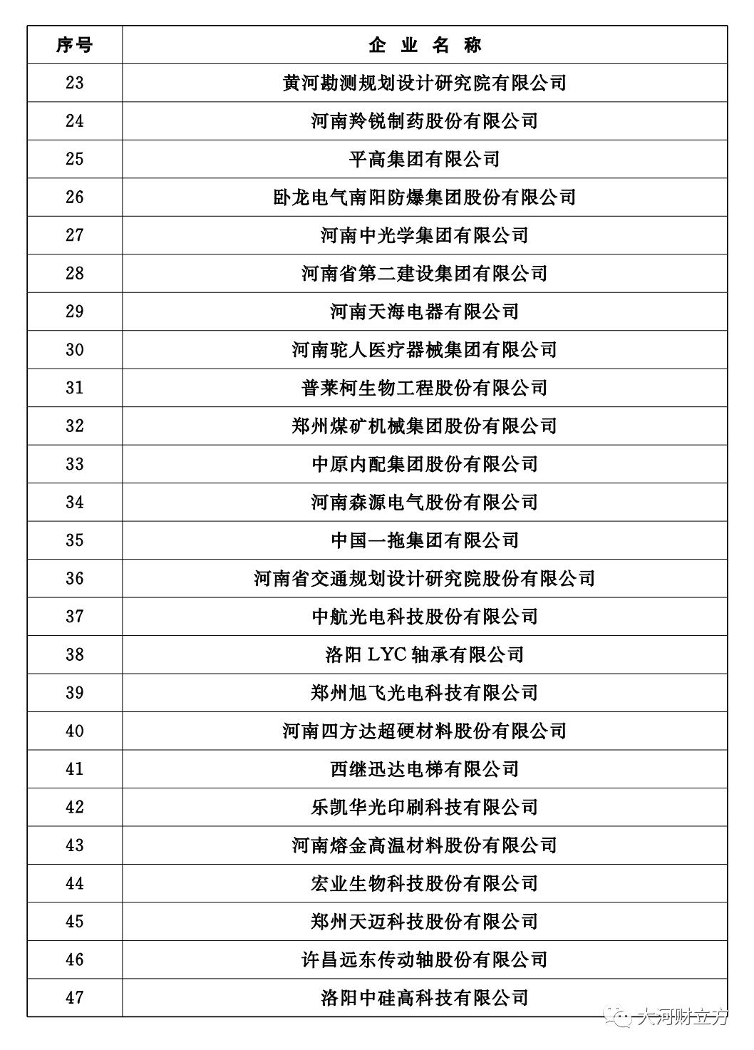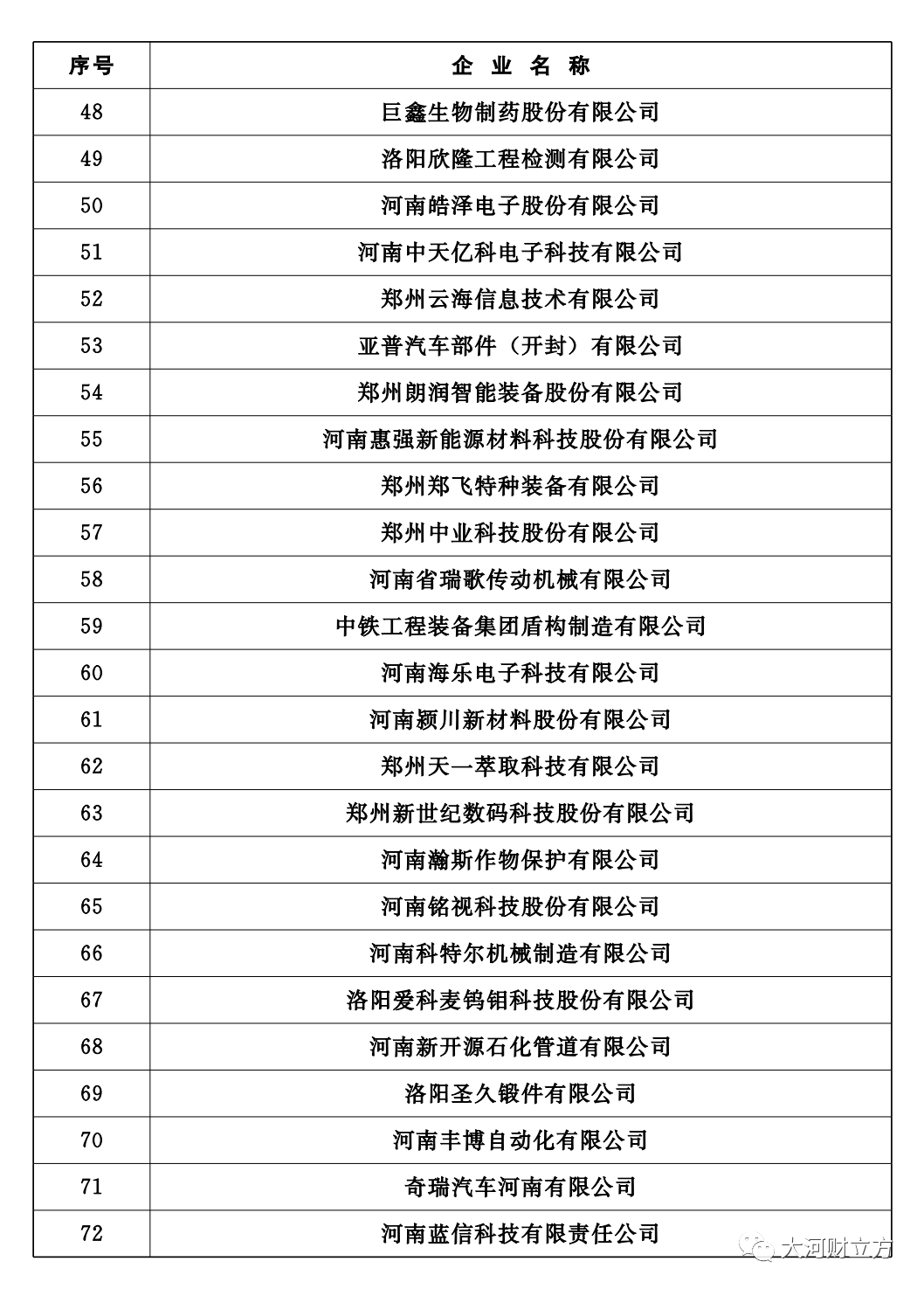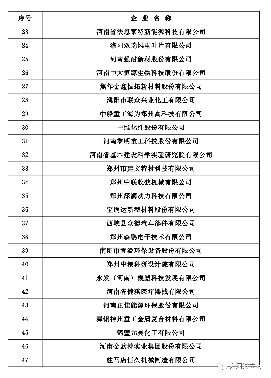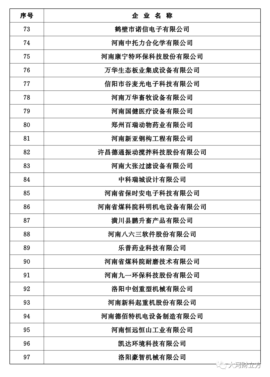 其中,创新龙头企业名单包括宇通客车、汉威科技、中信重工、许继集团等116家企业,“瞪羚”企业名单包括河南三元光电科技有限公司、鹤壁国立光电科技股份有限公司、河南凯旺电子科技股份有限公司等104家企业。