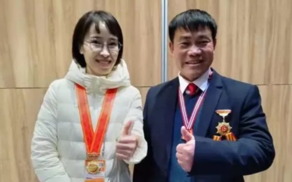 两位传递国旗的河南代表合影(左为宋舒娟)