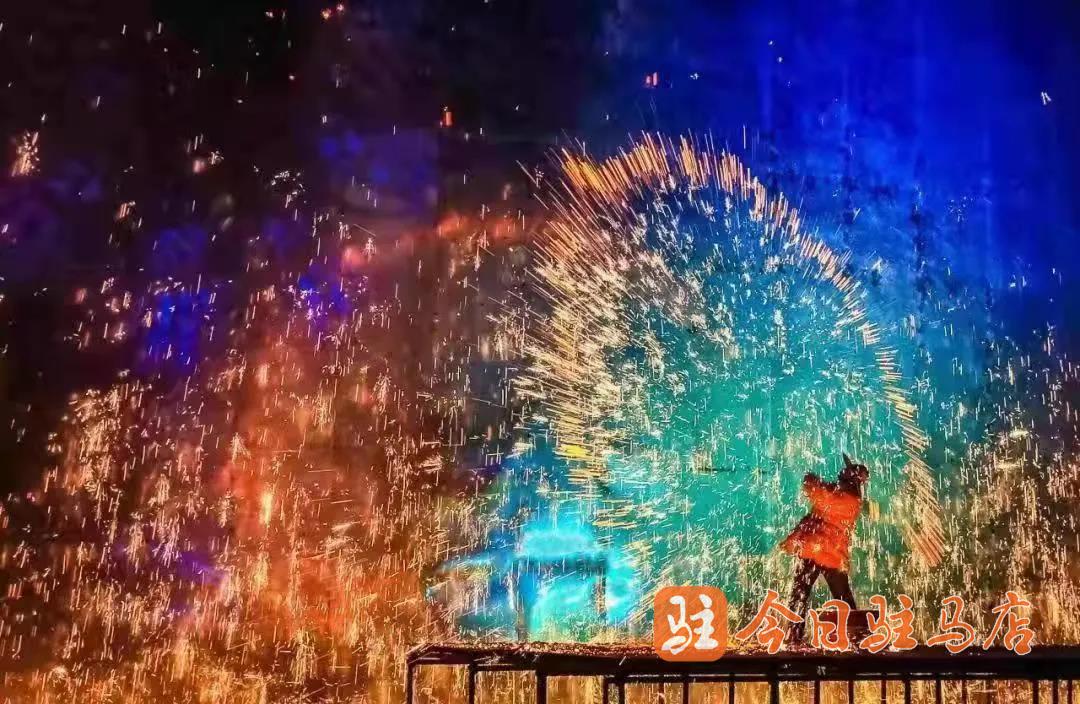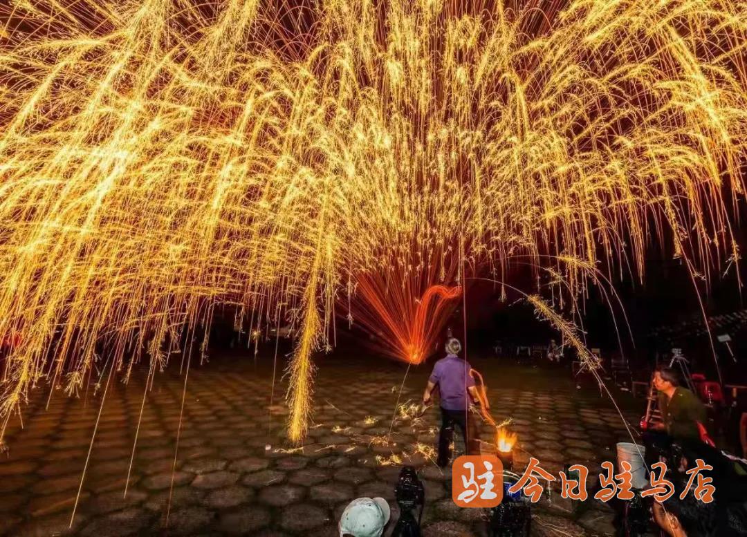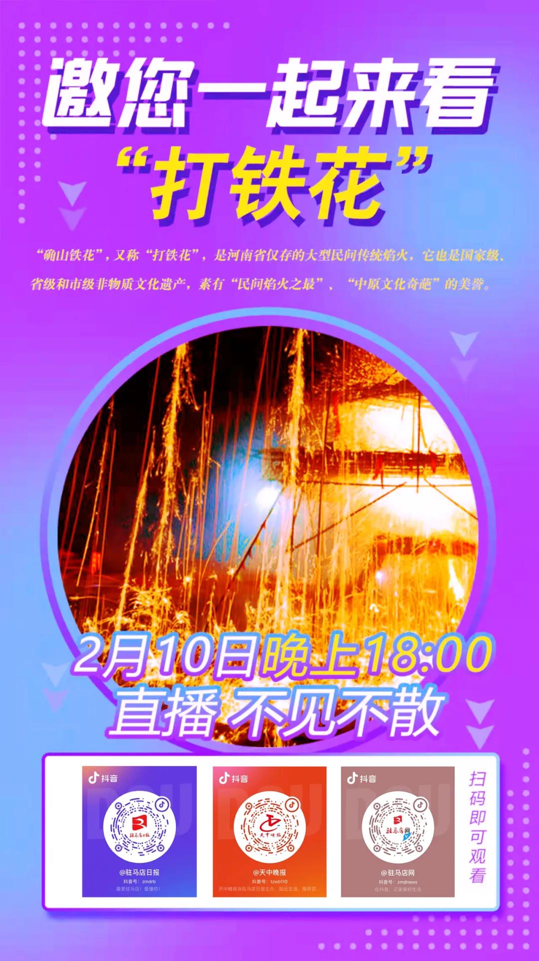驻马店日报官方抖音号、天中晚报官方抖音号、驻马店网官方抖音号同时现场直播千年非遗打铁花。