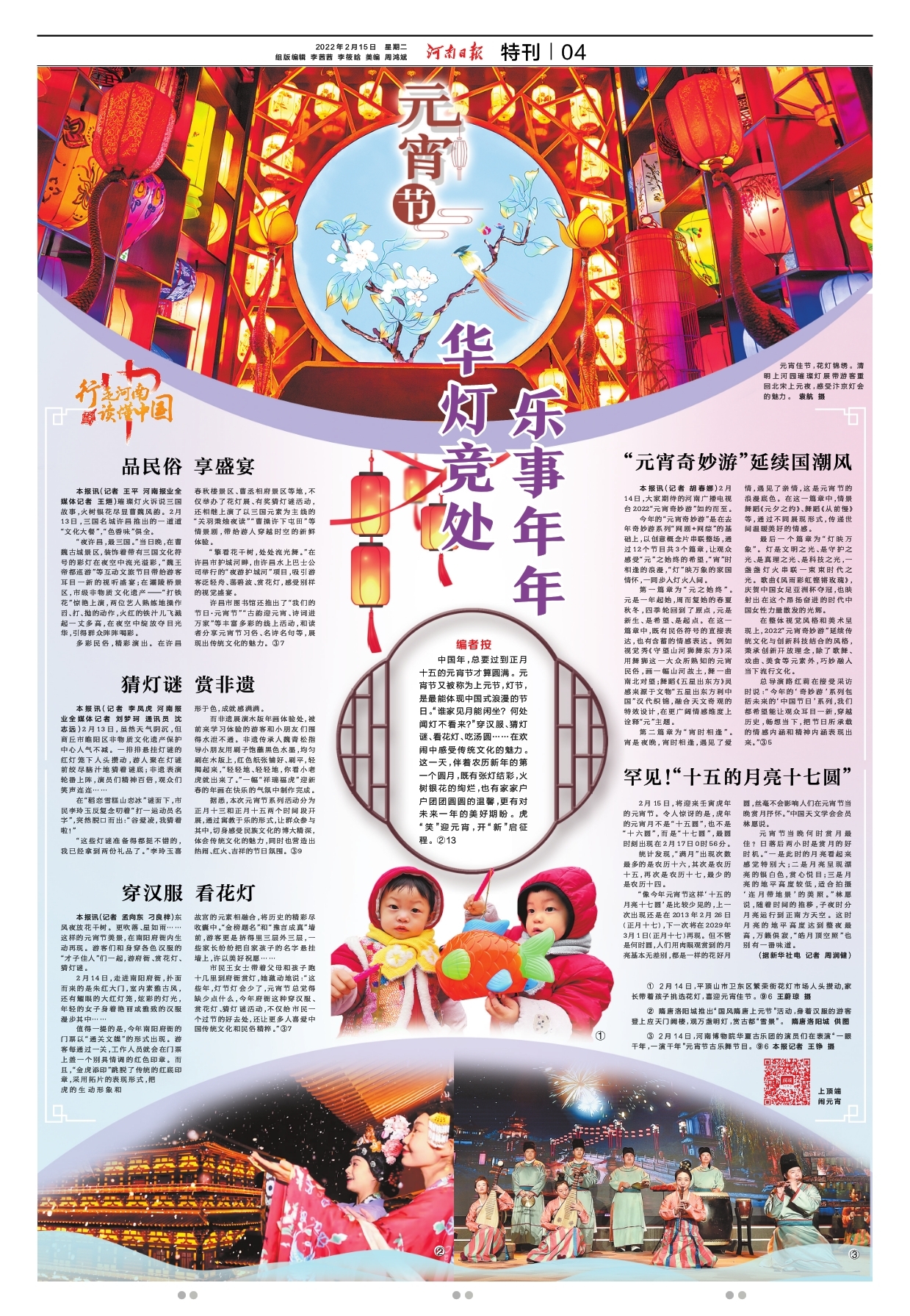 中国年,总要过到正月十五的元宵节才算圆满。元宵节又被称为上元节,灯节,是最能体现中国式浪漫的节日。“谁家见月能闲坐?何处闻灯不看来?”穿汉服、猜灯谜、看花灯、吃汤圆……在欢闹中感受传统文化的魅力。这一天,伴着农历新年的第一个圆月,既有张灯结彩,火树银花的绚烂,也有家家户户团团圆圆的温馨,更有对未来一年的美好期盼。虎“笑”迎元宵,开“新”启征程。
