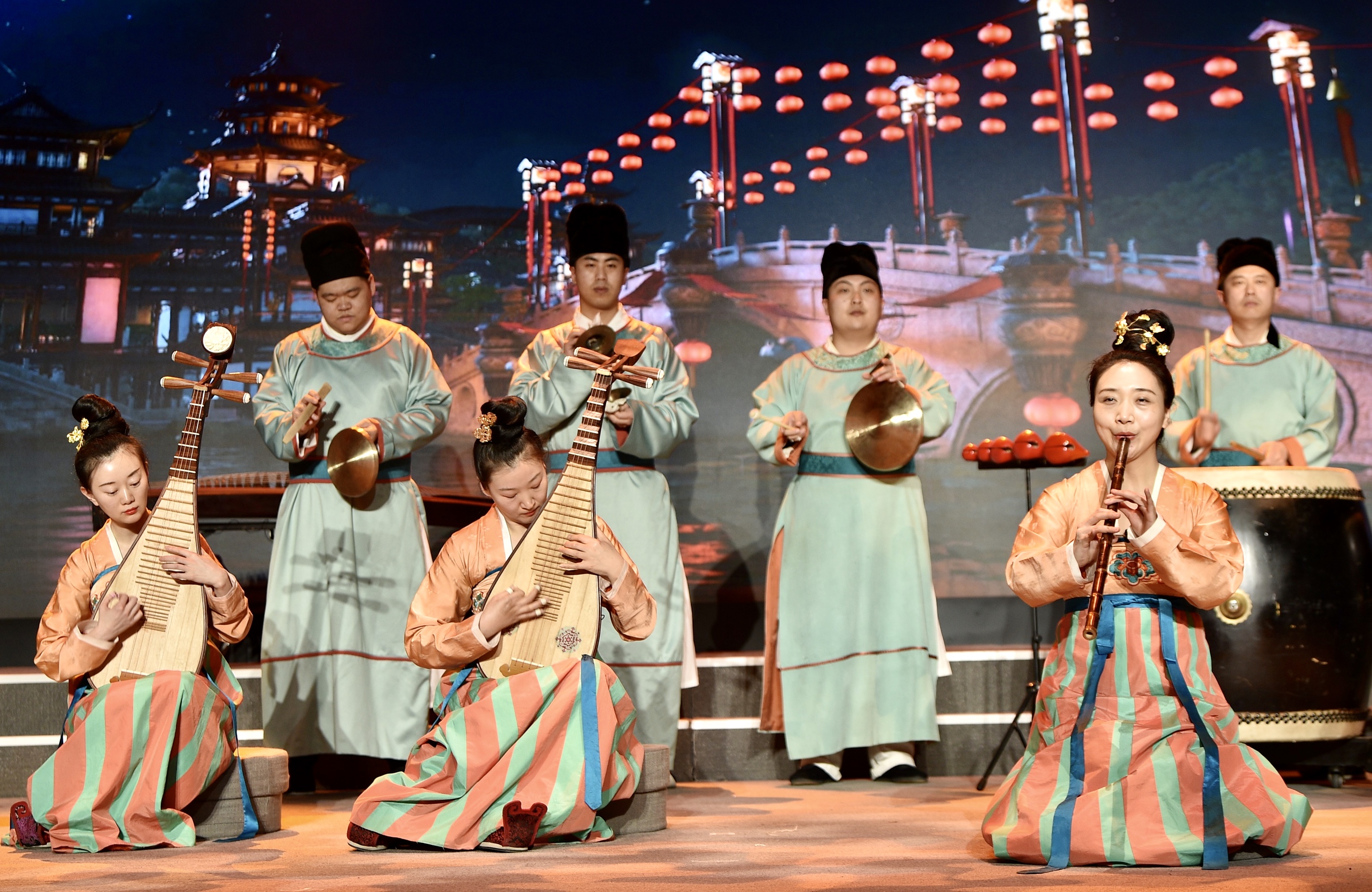 2月14日,河南博物院华夏古乐团的演员们在表演“一眼千年,一演千年”元宵节古乐舞节目。河南日报客户端记者 王铮 摄