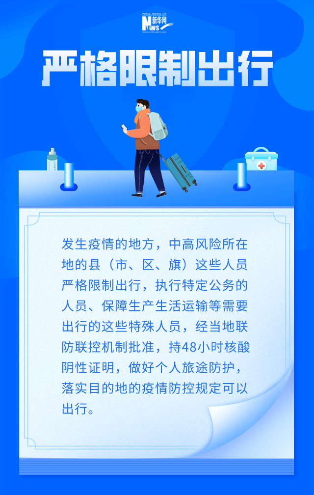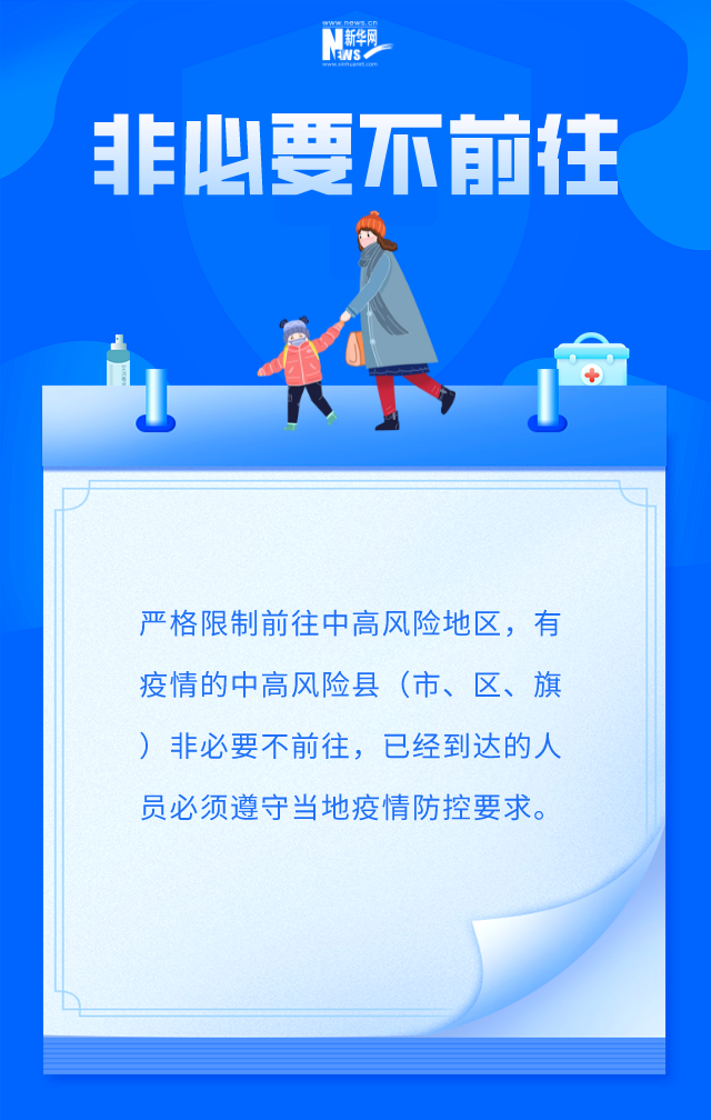 在日前召开的国务院联防联控机制新闻发布会上,国家卫生健康委疾控局一级巡视员贺青华表示,目前全球疫情仍在高位流行,全国仍然有局部地区散发聚集性疫情发生,春运返程出行仍然要坚持安全有序,尽量错峰出行。如何做到安全有序出行?贺青华提醒了三句话:一是严格限制出行,二是非必要不出行,三是非必要不前往。具体如下: