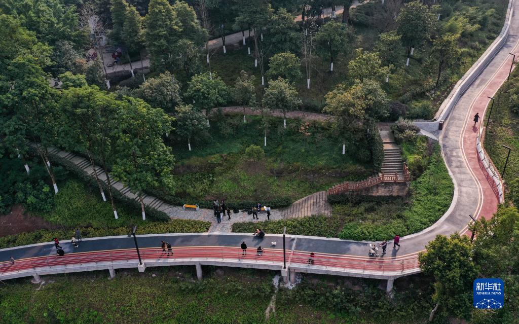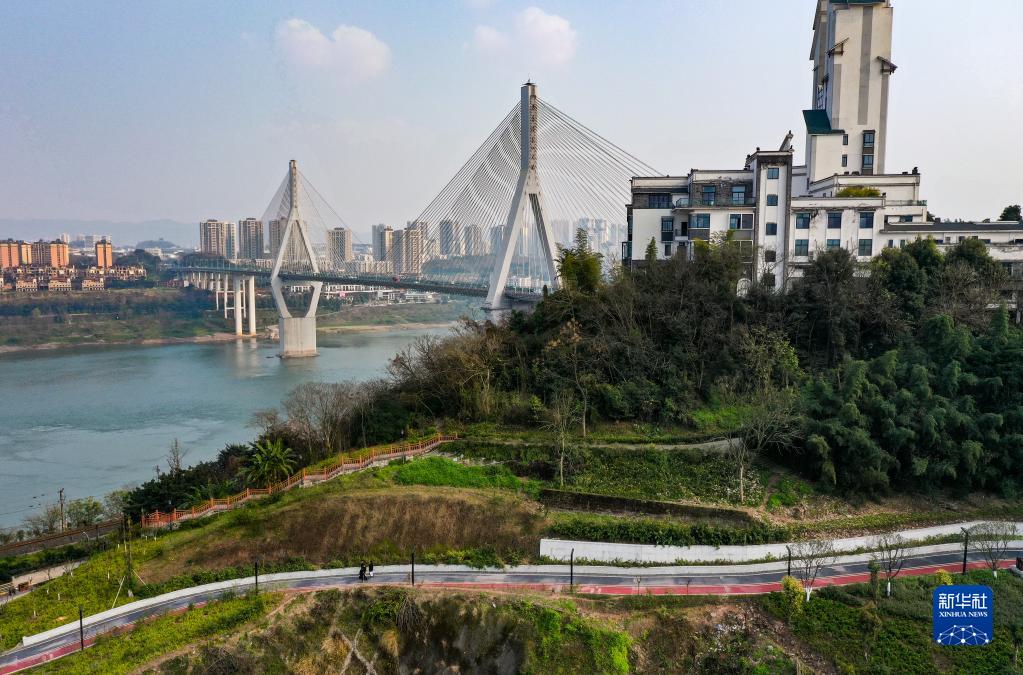 这是2月15日拍摄的位于重庆市大渡口区的重钢崖线山城步道附近景色(无人机照片)。新华社记者 王全超 摄