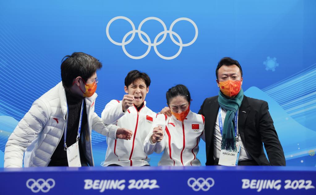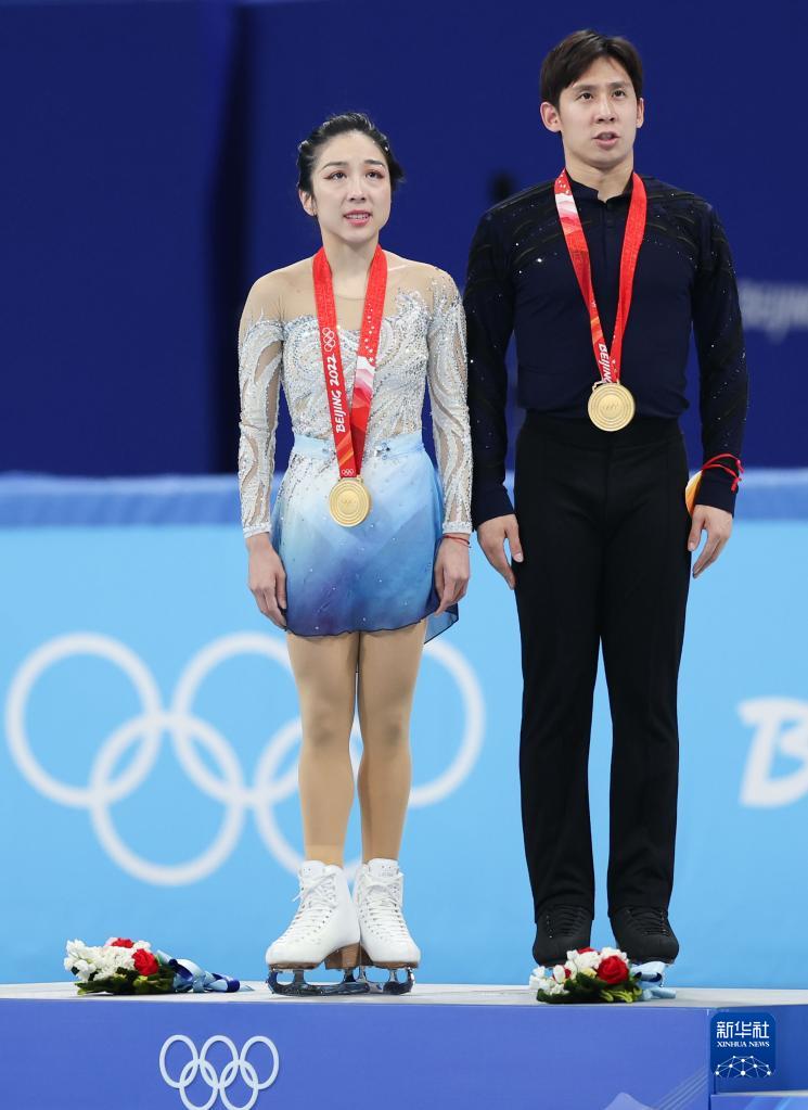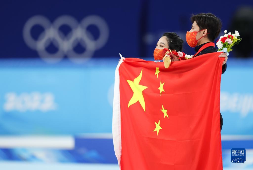 当日,北京2022年冬奥会花样滑冰双人滑自由滑比赛在首都体育馆举行,中国选手隋文静/韩聪夺得双人滑冠军。