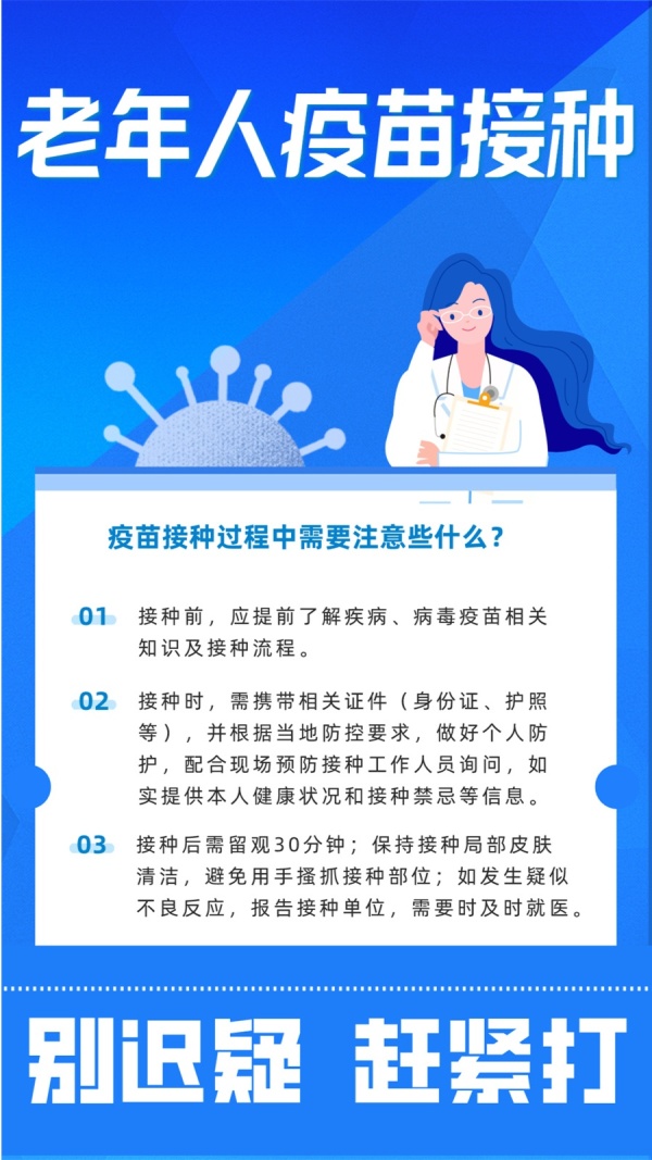 老年人大多有基础疾病,感染新冠病毒后发生重症、死亡的风险远高于年轻人和儿童。老年人接种新冠病毒疫苗,可有效降低感染后的重症风险。