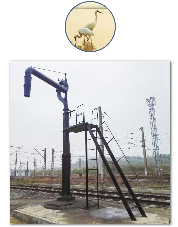 在蒸汽机车还在使用的年代,铁路线路旁耸立有高大的上水装置——“水鹤”,及时为蒸汽机车补充用水。