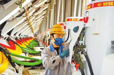 总装车间里,员工们戴着口罩在忙碌着。郑煤机总装厂厂长苑少冲告诉记者,受能源供应紧张和采煤设备更新换代影响,客户对成套化智能综采设备需求特别大。近段时间他一直吃住在单位,根据生产线上游的工区工序间的进度差异,做到差异化倒班,确保各班次达到最大化总装。