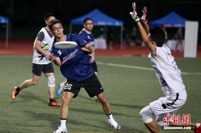 资料图:首届北京飞盘公开赛中,双方队员进行飞盘攻防。 中新社记者 易海菲 摄