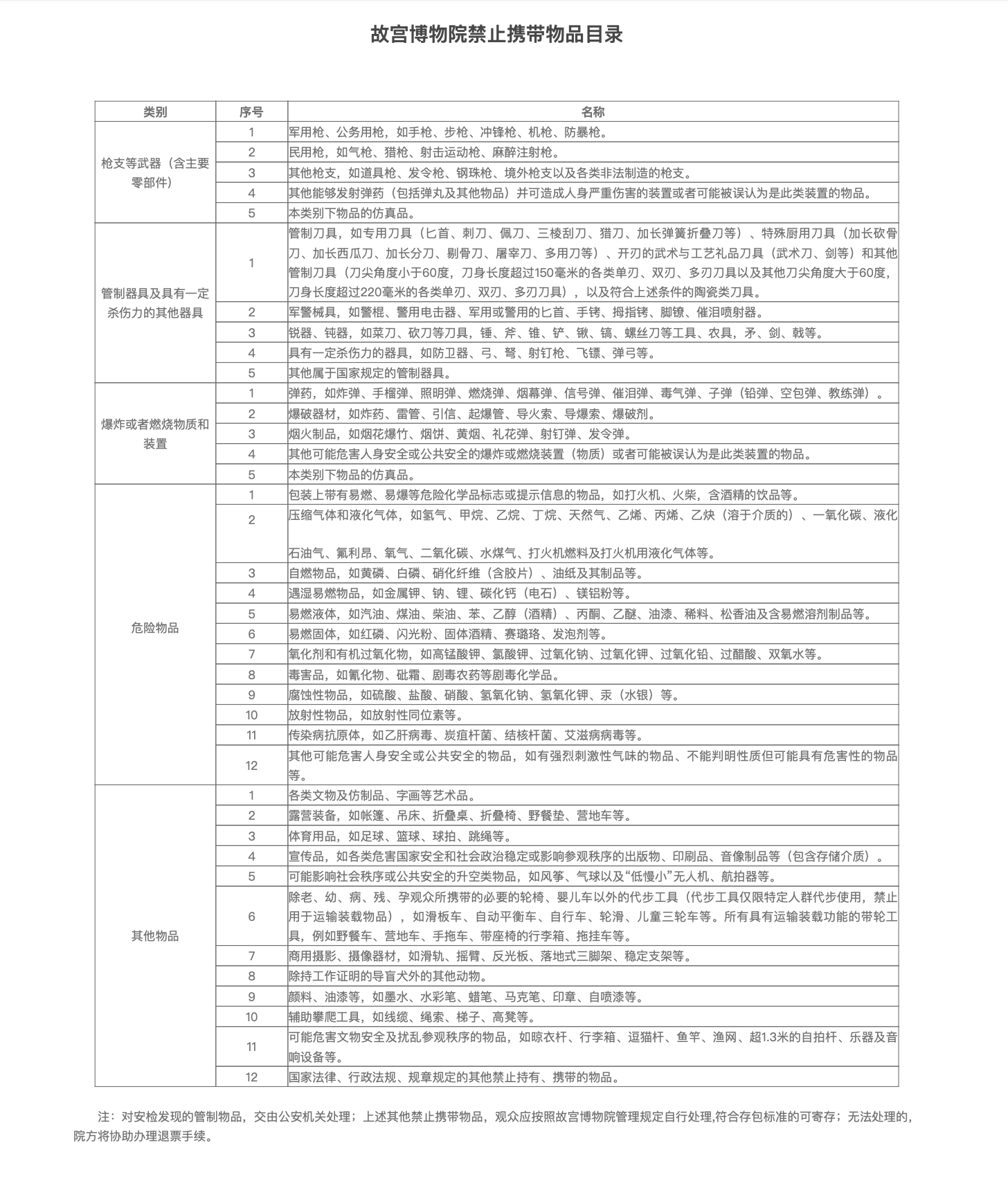 附:《故宫博物院禁止携带物品目录》