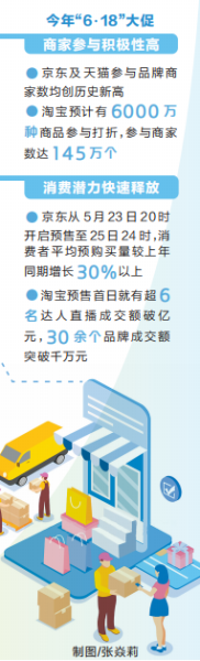 高性价比推动消费潜力快速释放。京东从5月23日20时开启预售至25日24时,消费者平均预购买量较上年同期增长30%以上。淘宝预售首日就有超6名达人直播成交额破亿元,30余个品牌成交额突破千万元。