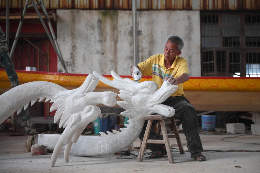 今年65岁的许桂生,出生于“龙舟世家”,在传承传统制造技艺的基础上,他敏锐捕捉市场需求,不断推陈出新。“随着龙舟运动的推广,‘南舟北移’的趋势明显,越来越多的北方群众爱上了划龙舟,我们研发的旱地龙舟受到了新疆等地客户的追捧。”许桂生说。