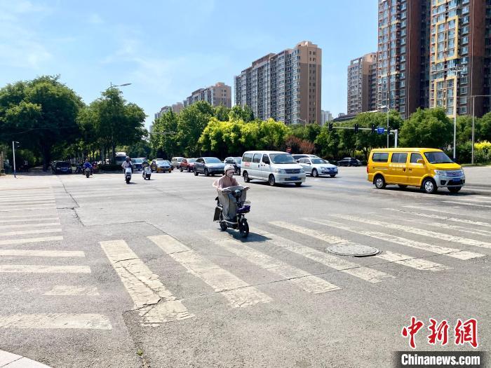 图为石家庄街头,顶着烈日出门的市民穿着防晒服,戴着遮阳帽。李晓伟 摄