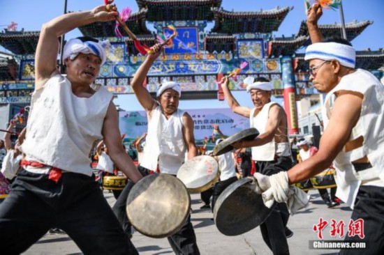 资料图:山西临汾上演特色民俗锣鼓表演,庆祝端午佳节。 中新社记者 武俊杰 摄