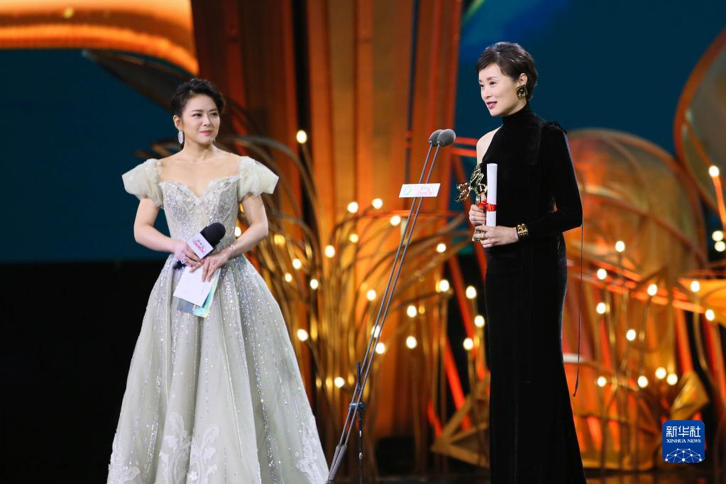 6月23日,演员吴越(右)凭借电视剧《县委大院》荣获白玉兰最佳女主角奖。新华社记者 辛梦晨 摄
