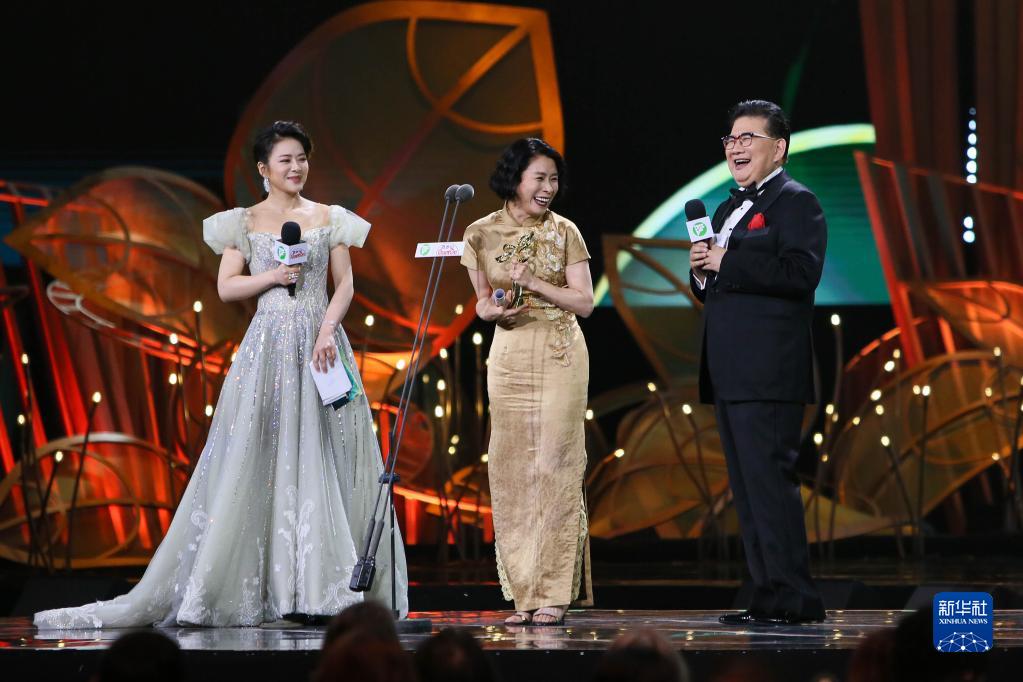 6月23日,演员刘丹(中)凭借电视剧《开端》荣获白玉兰最佳女配角奖。新华社记者 辛梦晨 摄