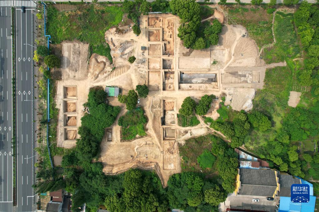 江苏常州寺墩遗址发掘区(2023年5月21日摄,无人机照片)。