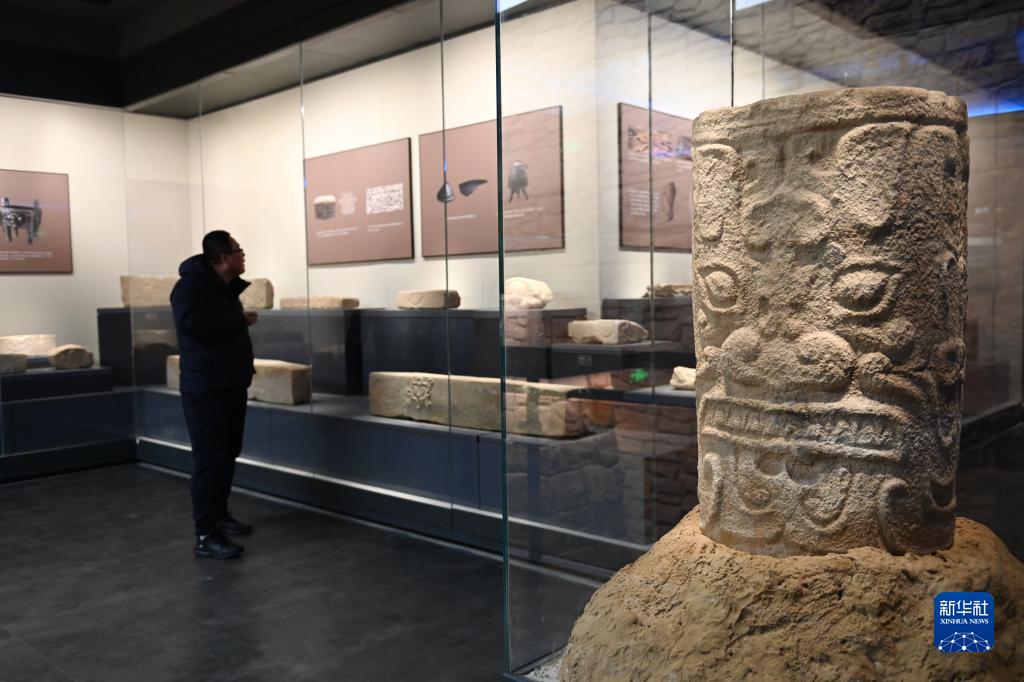 这是11月29日拍摄的石峁博物馆展出的石雕。