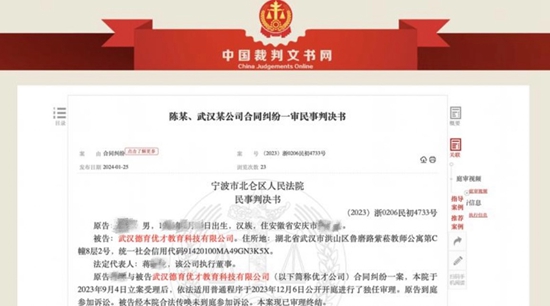 记者在中国裁判文书网上查询到一份涉德育优才公司的民事判决书。在浙江宁波从事建筑工作多年的陈某,因为工作需要想申报建筑工程专业中级工程师职称。因不懂申报流程和相关程序,通过网上找到德育优才公司。2021年11月22日,陈某与该公司签订了中级职称委托合同,通过转账方式缴纳6000元,但该公司一直未帮助陈某获得证书。多次联系后,该公司同意退费,但一直以各种理由未退费,并拒绝接听陈某电话。陈某诉诸法院后,宁波市北仑区人民法院认定该公司合同违约,判处退还评审费用。
