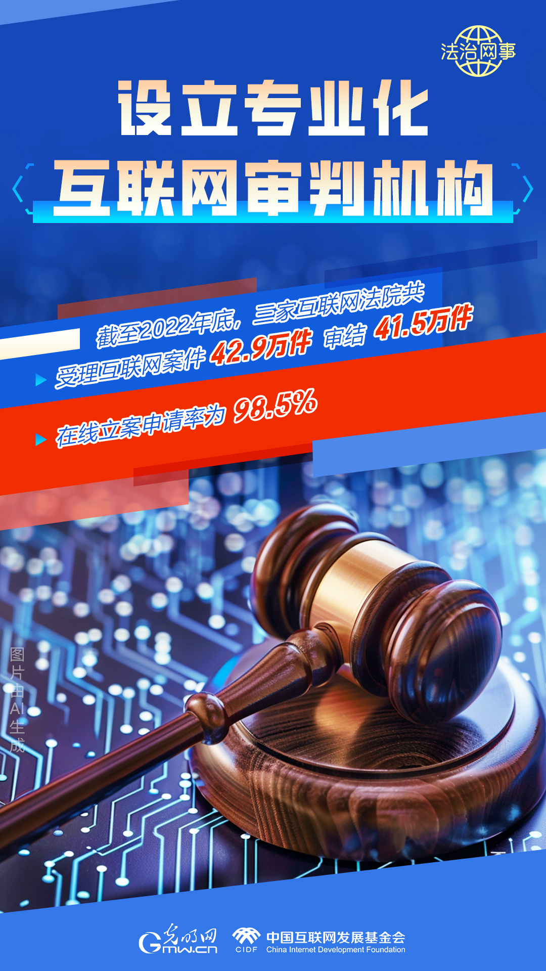 截至2022年底,三家互联网法院共受理互联网案件42.9万件,审结41.5万件,在线立案申请率为98.5%。