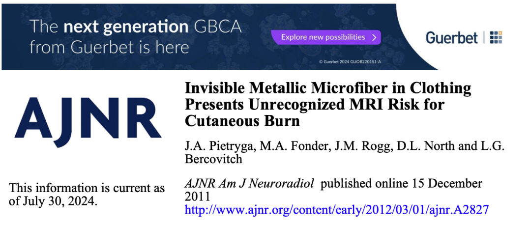 这不是第一次核磁共振灼伤人事件,早在 2012 年,就发生了一起类似的事件,刊登在《美国神经放射学杂志》期刊上。