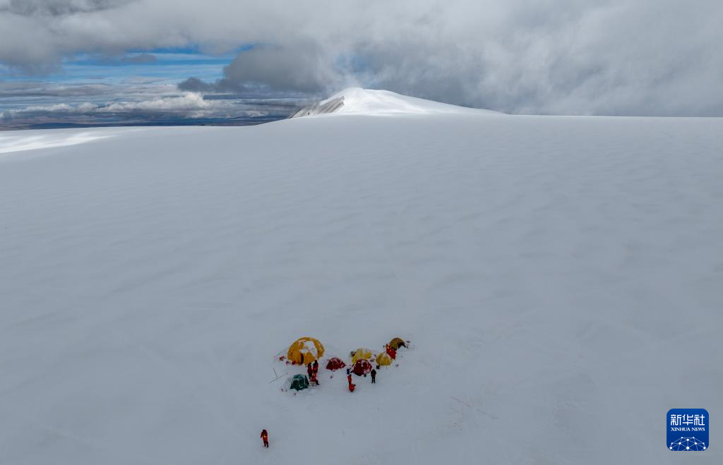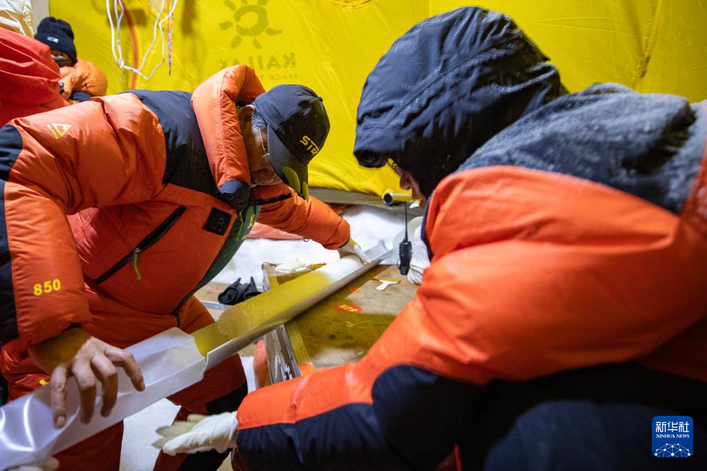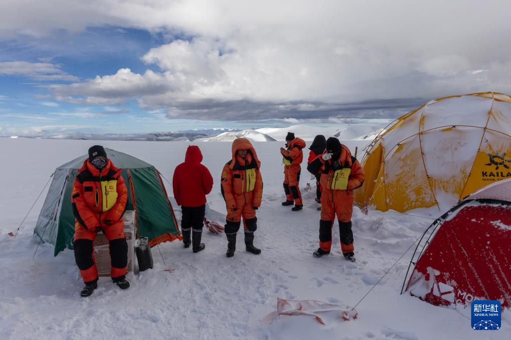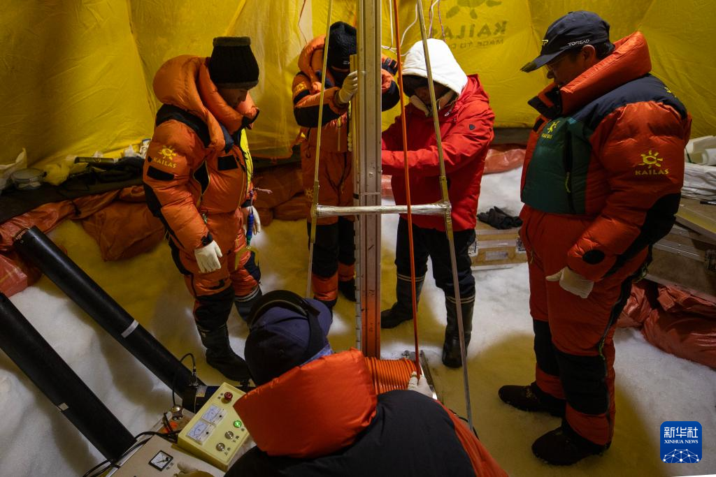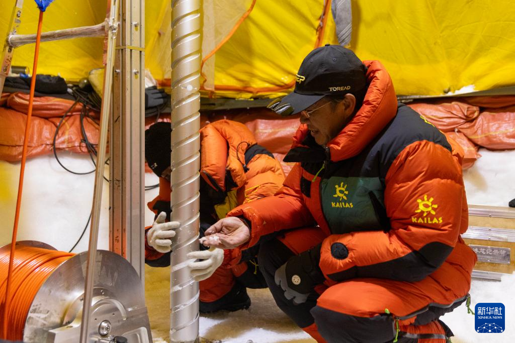 9月11日晚,由中国科学院青藏高原研究所副所长徐柏青研究员带领的科考团队在普若岗日冰原顶部海拔6100米的“Dome.C”点开机钻取冰芯。