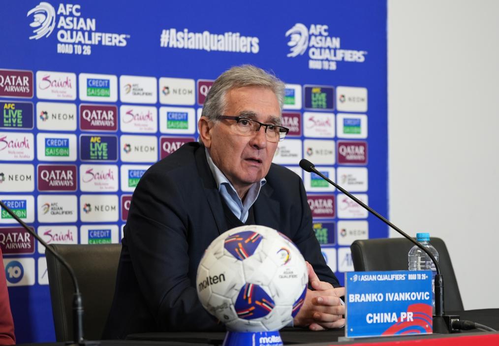 中国队主教练伊万科维奇在赛后发布会上。新华社发(谢思达摄)
