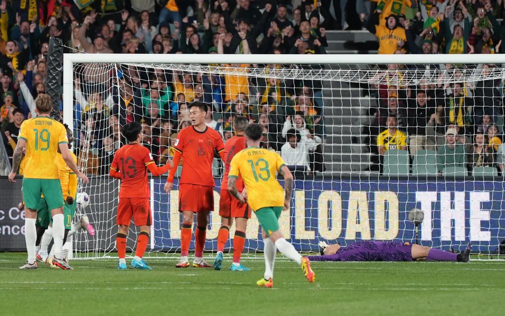 10月10日,在澳大利亚阿德莱德举行的2026年国际足联世界杯亚洲区预选赛18强赛C组第三轮比赛中,中国队客场1比3不敌澳大利亚队。新华社发(谢思达摄)