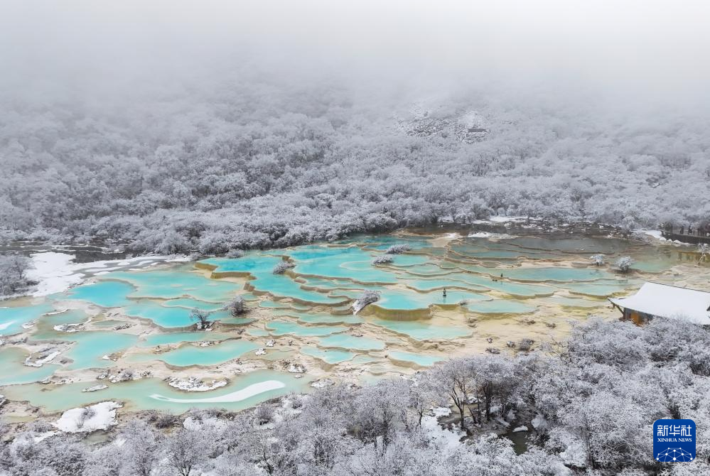 当日,雪后的四川省阿坝藏族羌族自治州黄龙景区薄雾弥漫,仿佛披上了一层轻纱,如梦如幻。