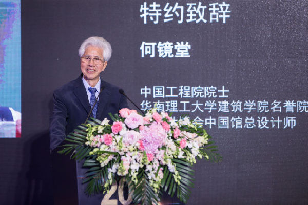 2017年11月21日,何镜堂在“2017中国城市运营论坛”上发言。图片由中国城市运营联盟提供