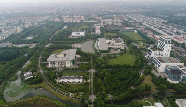 位于上海西南的松江,是以上海为中心的长三角城市群重要节点区域。记者使用无人机航拍,从空中鸟瞰上海市松江区风貌。新华社记者 丁汀 摄