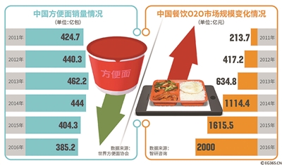 今年以来,国内方便面市场连续三年销售下滑的局面得到遏制,行业利润甚至略有上升,特别是零售价较高的高端面被行业视为“救命稻草”。不过,提高了价位的高端方便面,最直接的竞争对手就是快餐,尤其是网络外卖。虽然在价格上不占优势,但网络送餐在口味、饭菜量上显然都要远胜过方便面,能否在竞争中胜出,或将决定方便面的未来。