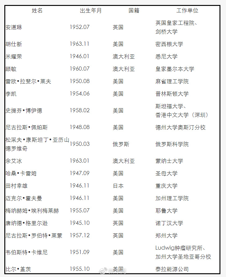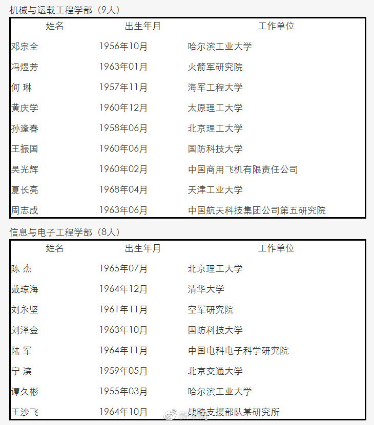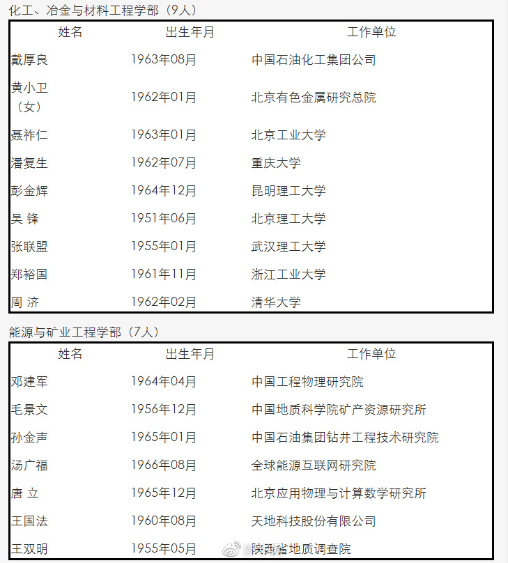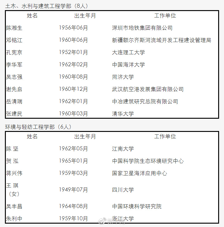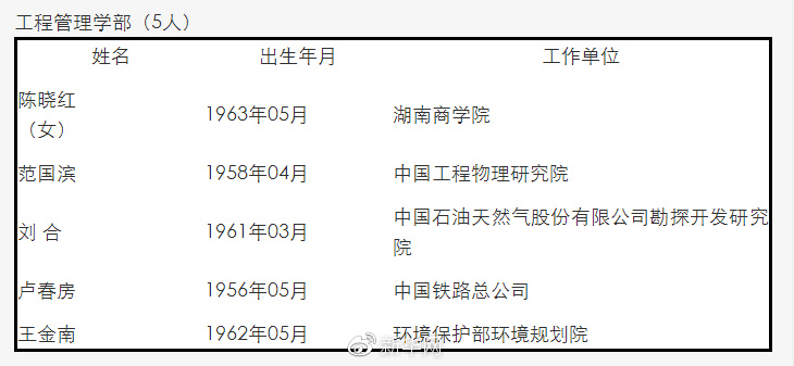 中国工程院2017年院士增选结果已经主席团会议审议通过并报国务院备案,现予公布。