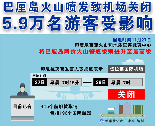 图表:巴厘岛火山喷发致机场关闭 5.9万名游客受影响 新华社记者 王永卓 编制