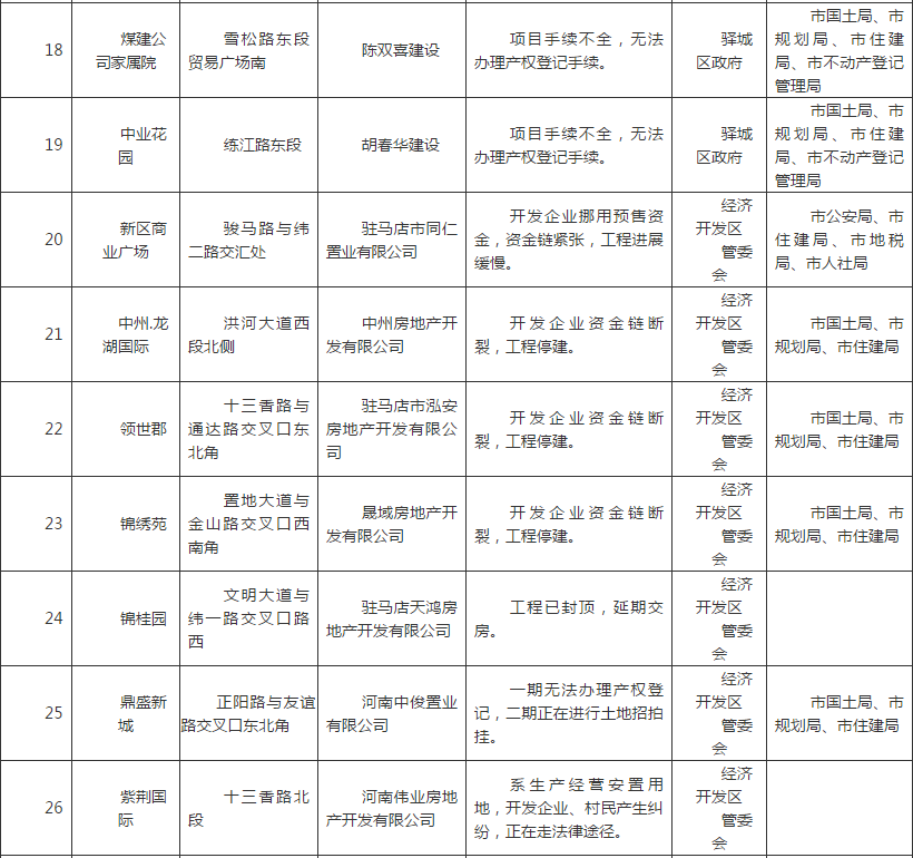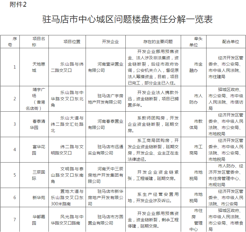 2.驻马店市中心城区问题楼盘责任分解一览表