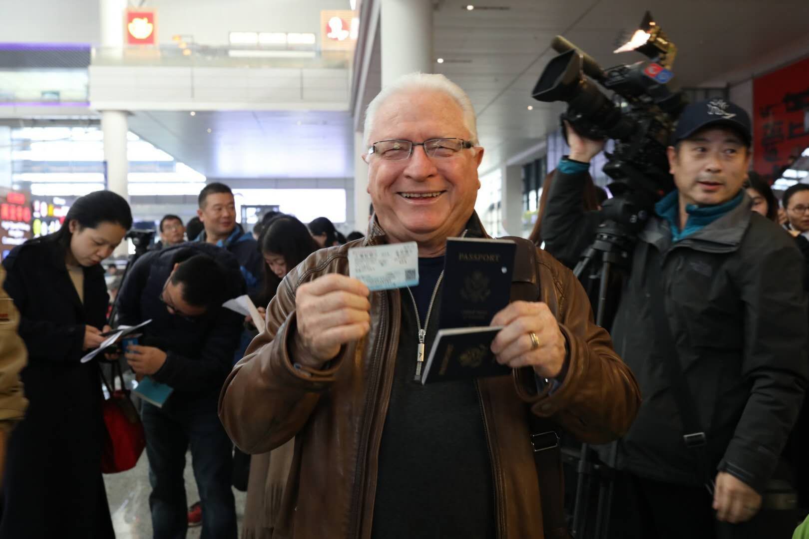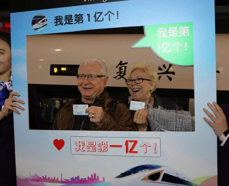 来自美国佛罗里达州奥兰多的查尔斯今年79岁,长年在中国经商,经常乘坐高铁来往中国各个城市,去过深圳和上海。这次他与太太一起来中国,打算先乘高铁去北京,再乘飞机返回美国。“成为第一亿名出发旅客,很惊喜,中国高铁很棒!”查尔斯对中国高铁的印象很好,认为中国的高铁网络非常发达,同时希望美国也能有这么先进的高铁。