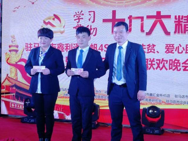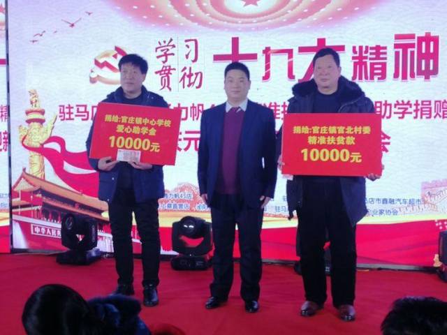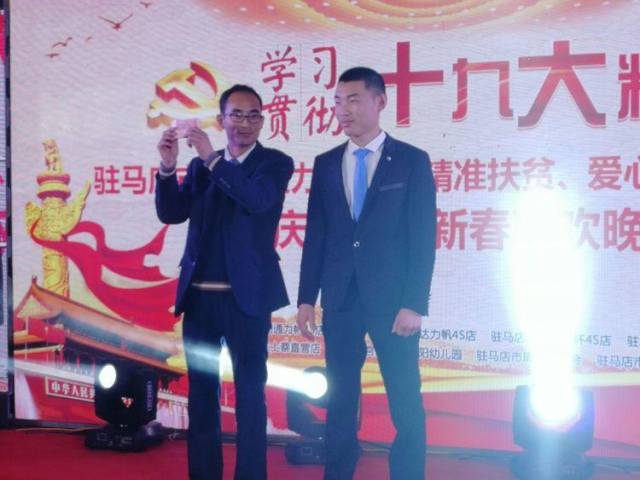 【驻马店广视融媒讯】(记者 朱剑锋 通讯员 李超)精准扶贫,爱心助学。1月13日晚,由驻马店市鑫利通力帆4S店主办的精准扶贫爱心助学捐赠活动暨庆元旦、迎新春联欢晚会在柏林国际酒店隆重举行,活动现场向官庄中心学校学生捐赠20000元,并举办庆元旦、迎新春联欢晚会。