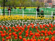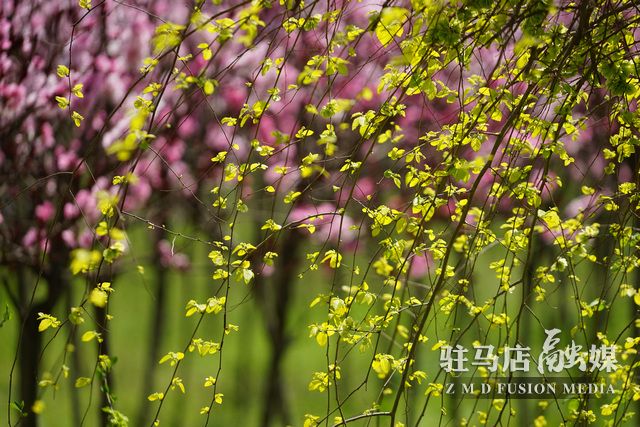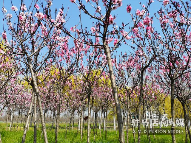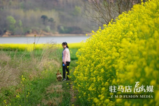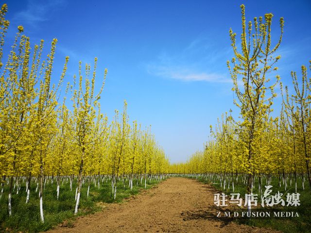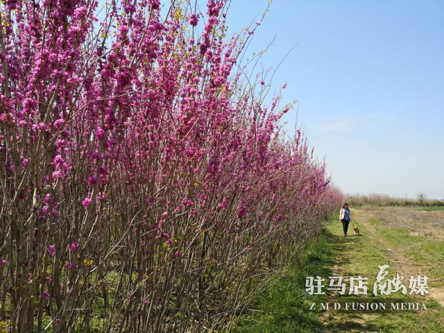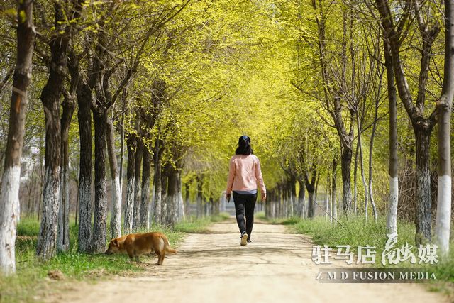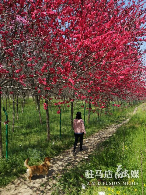 2019年3月31日,河南遂平县道路两旁的生态苗木农田里,各色花朵竞相开放,彩叶树木郁郁葱葱,一片田园如画,春色醉人的景象。一位小主人领着爱犬走进田野,徜徉在花间树下,尽情欣赏感受春天的美好。