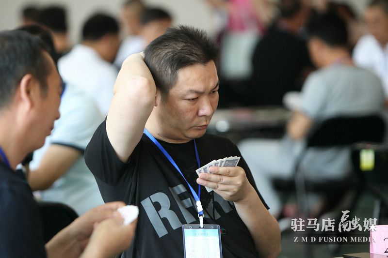 在当天上午的比赛中,各单位参赛扑克牌双升高手们四人一组围坐在一起,展开了斗智斗勇的牌技比拼。