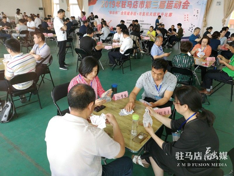 5月24日,由驻马店市人民政府主办,驻马店市卫生健康体育委员会、驻马店市教育局承办的驻马店市第三届运动会全民健身组(市直机关)扑克牌双升比赛在市老年健身活动中心举行。市委组织部、市卫生健康体育委员会、市教育局、市机关事务管理局共19支市直机关代表队的128名选手报名参赛。