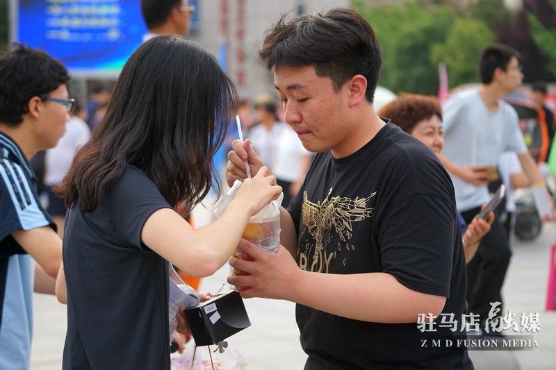 家人为走出考场的孩子送上冷饮