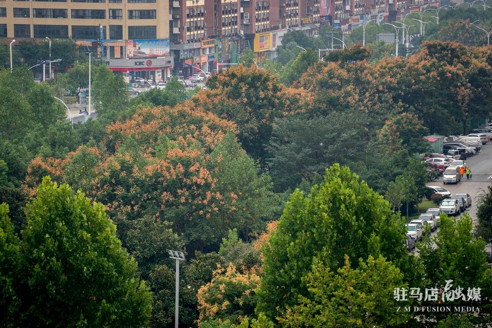 俯瞰望去,黄绿相间的景致,如画家用手中的画笔,将点点橙黄水粉洒向城市,赏心悦目,美不胜收。