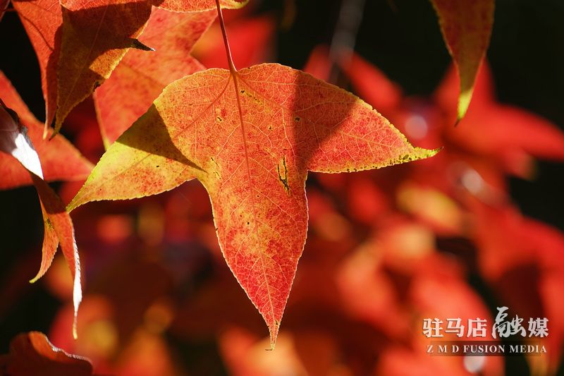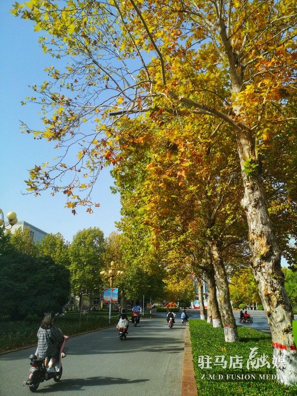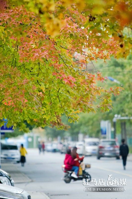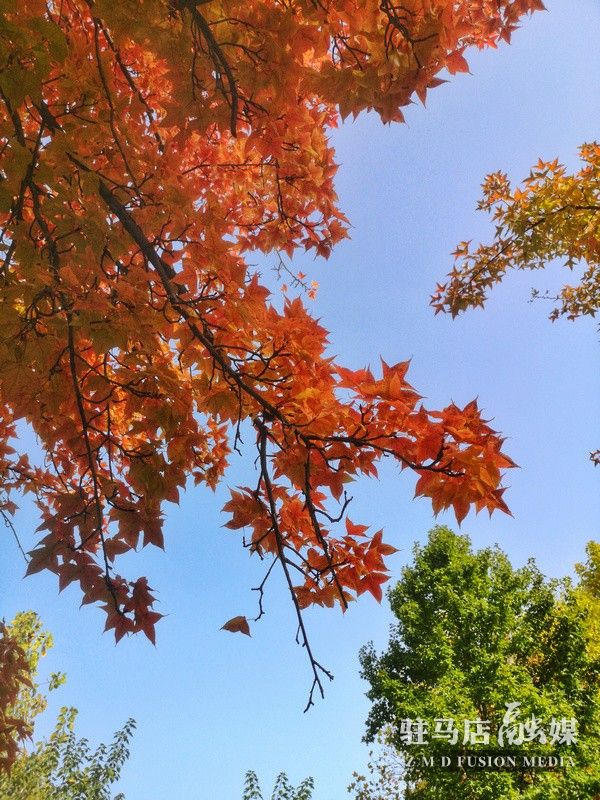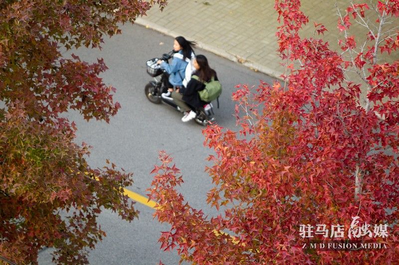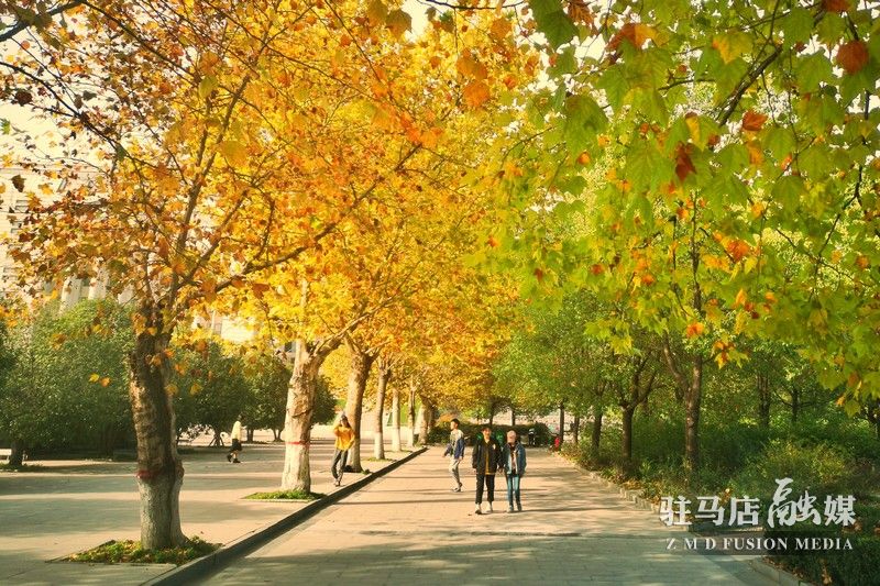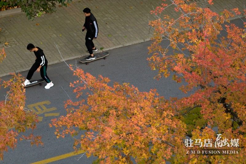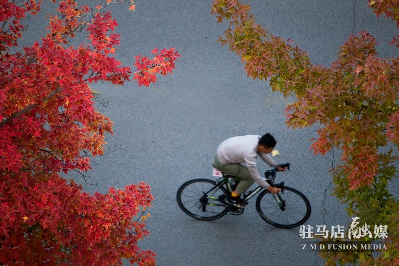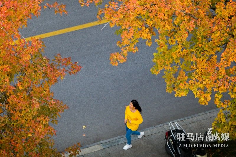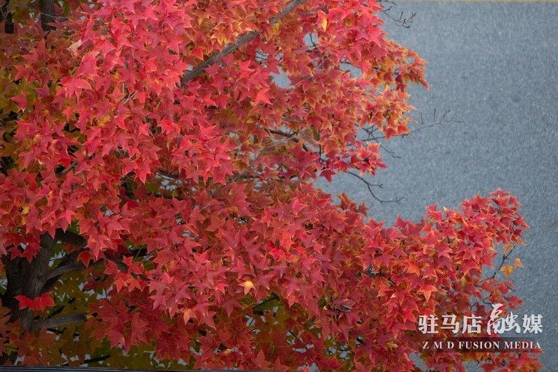 十月, 深秋的脚步越来越近 ,越来越急,叶黄知秋,枫红惊艳。2019年10月28日,位于河南驻马店市区的黄淮学院北区,十几株枫树的树叶火红一片,数百株梧桐树也叶黄变装,不觉间,黄淮学院四季中最有韵味的秋季美景已悄然呈现。 摄影:王向阳